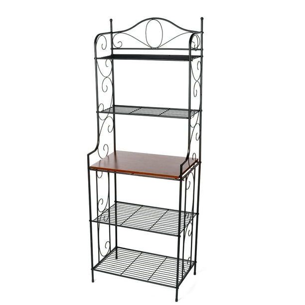 Basically a bakers rack can have several shelves and optional cabinets or drawers. It is usually made of metal but it can also be made of wood plastic or chrome. Generic Tribesigns Bakers Rack with Hutch Microwave Oven Stand 5-Tier Kitchen Utility Storage Shelf Height Free Standing Kitchen Org.